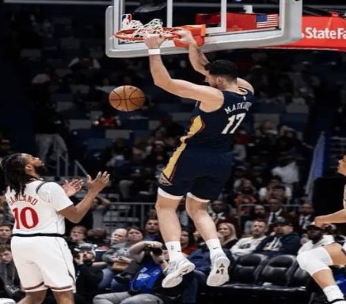 就連之前狀態(tài)起伏的錫安,這場也高效得很——8投6中,輕輕松松拿下14分4籃板3助攻,還送了1記大帽,完全不像賽季初那個掙扎的胖虎。