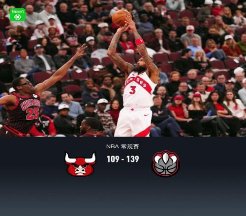 北京時間3月19日NBA 常規(guī)賽,芝加哥公牛對陣多倫多猛龍。半場公牛45-72猛龍,最終公牛109-139猛龍。