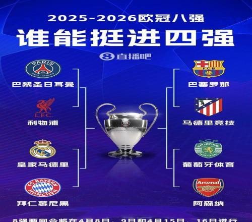 隨著8-3、4-1等極具視覺(jué)沖擊力的大比分接連上演,歐冠八強(qiáng)對(duì)陣圖正式揭曉,多組宿命重逢、風(fēng)格對(duì)撞的巔峰對(duì)話蓄勢(shì)待發(fā),究竟哪支王者之師能笑納最終榮耀?