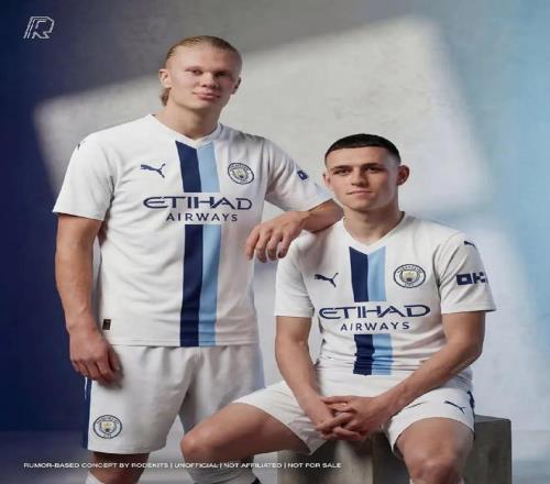 不過,報道稱,獲勝設(shè)計大概率會是一件經(jīng)典的白色球衣,配有海軍藍和天藍色的垂直條紋。有設(shè)計師根據(jù)該設(shè)計,PS出了曼城球員的上身圖(上圖)。