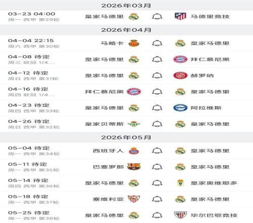 皇馬未來賽程