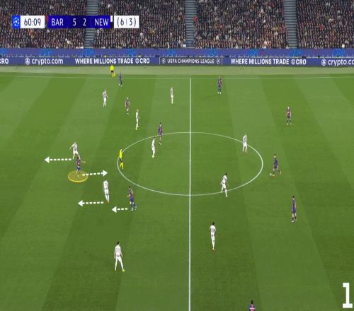 周三對陣紐卡一役,巴薩也采用了同款戰(zhàn)術(shù)拆解對手防線。