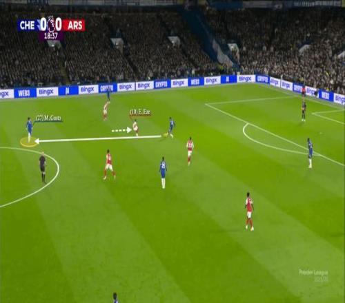 本賽季11月馬雷斯卡執(zhí)教的切爾西,也曾用這套方式1-1逼平阿森納:控球時讓福法納客串右后衛(wèi),詹姆斯與古斯托交替換位,硬生生撕開了阿森納的逼搶體系。