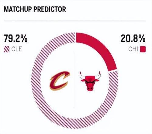 賽前,美媒ESPN對本場比賽進行了預測,公牛勝率僅有可憐的20.8% ,騎士勝率高達79.2% ,斷崖式領先。