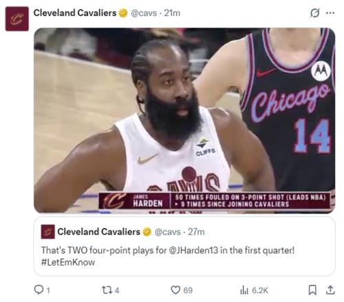 騎士:哈登36分9助攻7籃板7三分(騎士生涯新高得分),莫布利26分14籃板,泰森18分11籃板,梅里爾13分3助攻,施羅德9分。