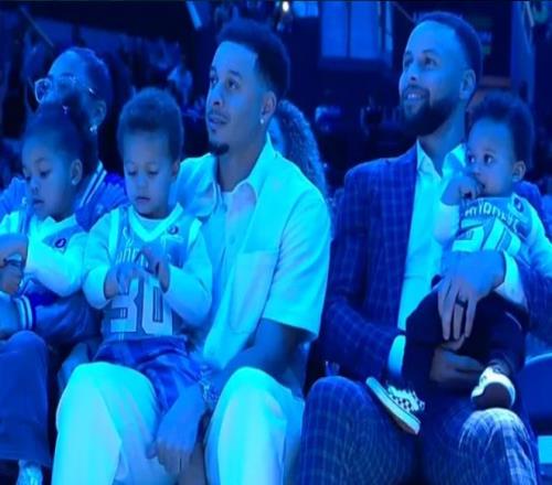 如今黃蜂主場為戴爾-庫里舉辦30號球衣退役儀式,庫里全家人到場見證父親的榮耀時刻,見證30號球衣冉冉升空,并且全家一起合影留念。