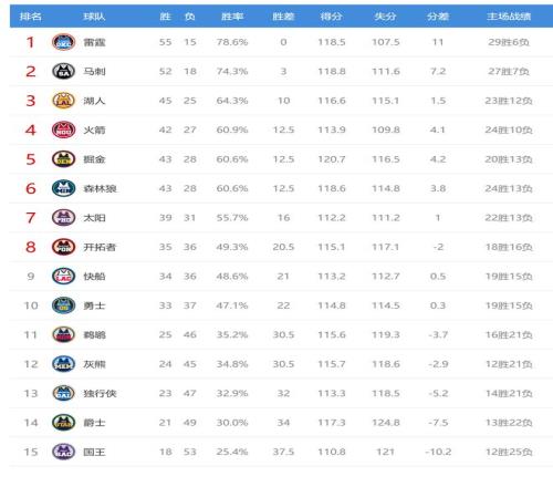 今日比賽后西部火箭、掘金、森林狼排名互換,快船、開(kāi)拓者排名互換,鵜鶘、灰熊排名互換。