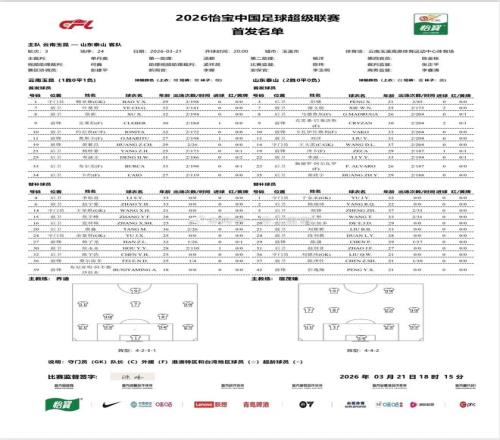 北京時間3月21日20:00,中超第3輪,云南玉昆主場對陣山東泰山。賽前首發(fā)公布。