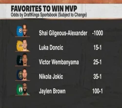 這一點(diǎn)也能從最新的MVP賠率里看出來(lái),如同MVP榜,在真金白銀說(shuō)話的賠率上東契奇也升到了第二,但是他與亞歷山大之間存在巨大差距。