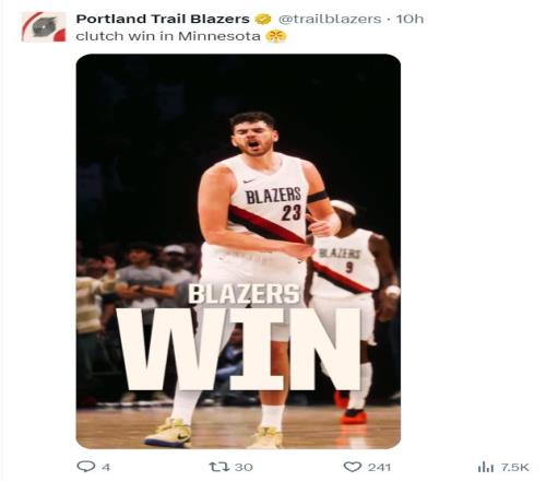 波特蘭開拓者108-104險勝明尼蘇達森林狼豪取三連勝。這場比賽開拓者上半場就領(lǐng)先9分,但第三節(jié)開拓者進攻效率下滑被森林狼縮小到1分,可在末節(jié)開拓者依靠防守重新建立優(yōu)勢最終拿下勝利。