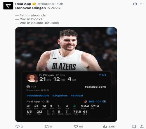 這場比賽后克林根最近的五場比賽三次拿到20+10,進入2026年后克林根籃板球第一、蓋帽第二、兩雙第二,克林根的蛻變實在是太徹底了。
