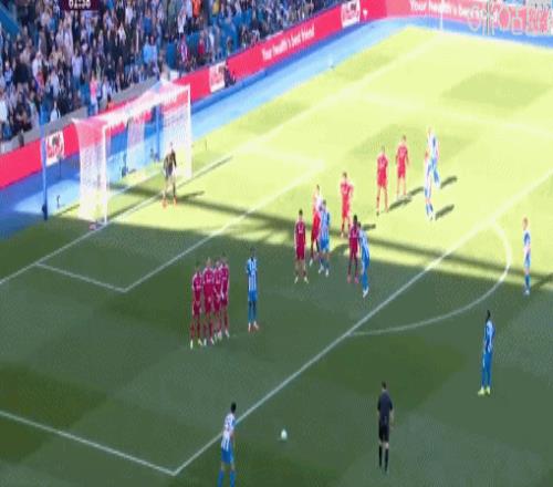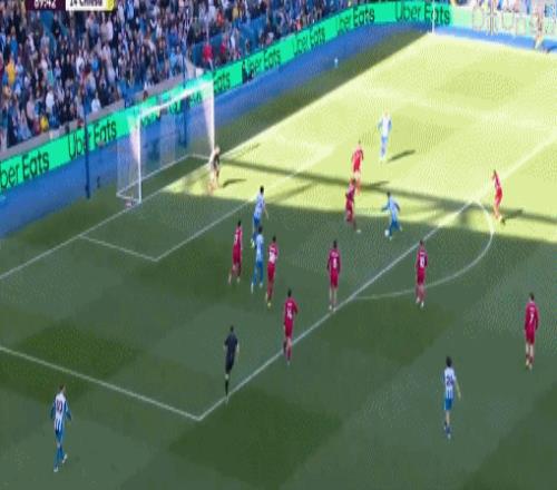 第14分鐘,維爾貝克力壓科納特頭球破門,利物浦0-1落后布萊頓!
