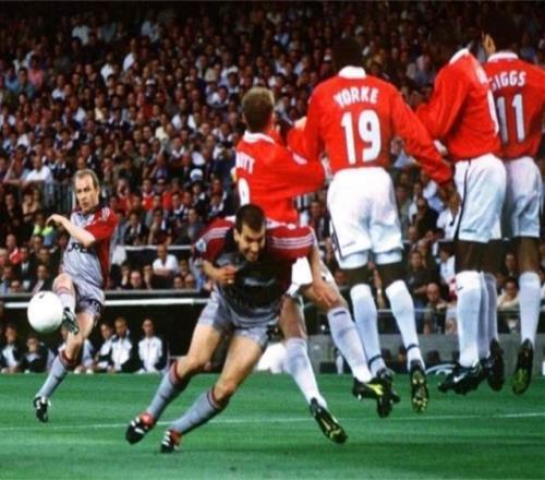 1998-99賽季,拜仁一路殺進(jìn)歐冠決賽,對手是弗格森的曼聯(lián)。比賽開場僅6分鐘,巴斯勒就用一腳標(biāo)志性的貼地任意球,洞穿了舒梅切爾的十指關(guān)!