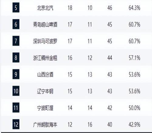 上海廣廈拉開差距,廣東暫列第3,山東第4不穩(wěn),8隊(duì)爭(zhēng)奪第12名
