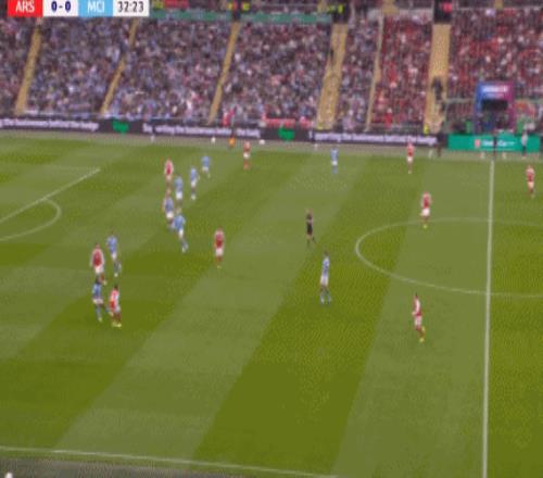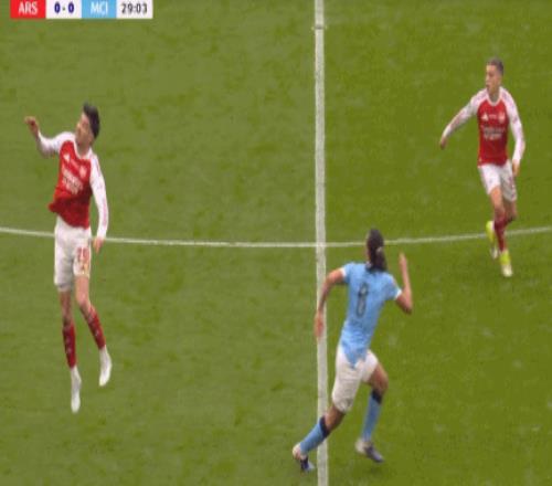 第33分鐘,加布里埃爾頭球擺渡,哲凱賴什停球被阿克破壞