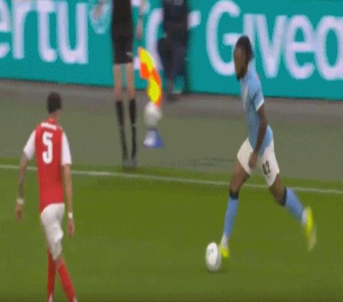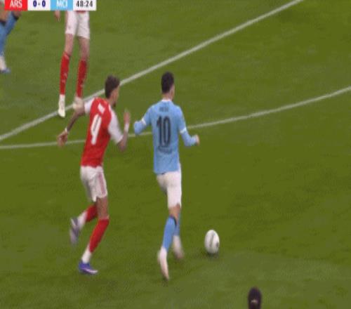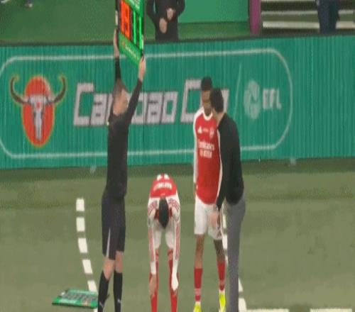 第42分鐘,薩卡在中場被阿克放倒,裁判沒有表示