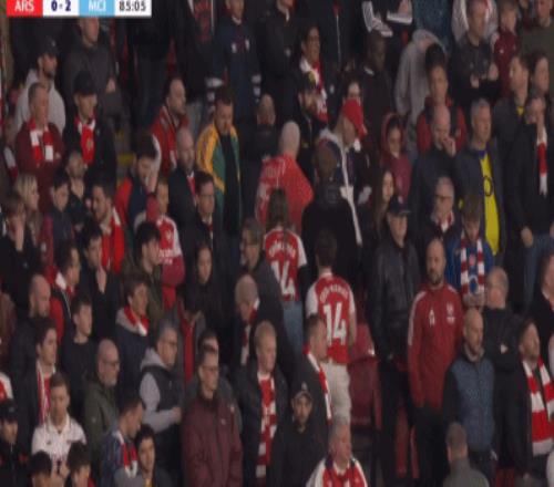 第85分鐘,鏡頭給到部分阿森納球迷提前退場