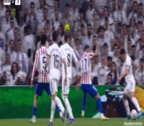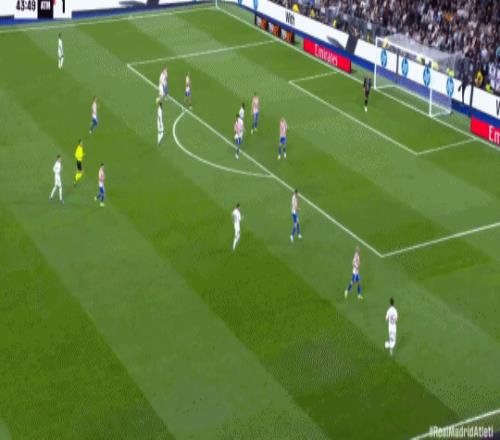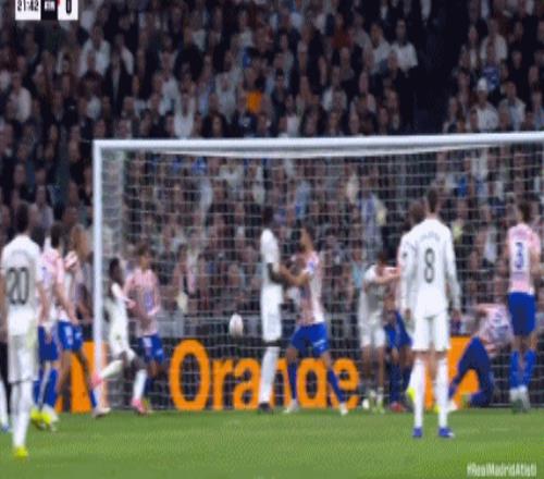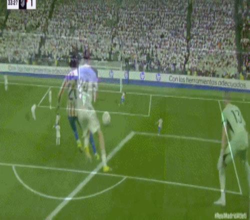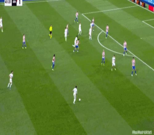 第41分鐘,卡瓦哈爾斜傳,楚阿梅尼甩頭攻門頂偏