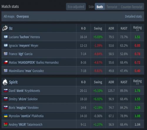 再到長(zhǎng)槍局,donk與magixx來(lái)A平臺(tái)雙人五殺完成2v5殘局,magixx爆轟三殺拿到第4分。雙方隨后開(kāi)黏,donk第10回合進(jìn)A練,槍爆轟四殺為綠龍拿到第6分。次回合donk開(kāi)場(chǎng)進(jìn)A大全白雙殺拿到第7分打出9z暫停,最終magixx進(jìn)攻大狙中路聯(lián)手tN1R三殺破點(diǎn),綠龍以8-4結(jié)束上半場(chǎng)。