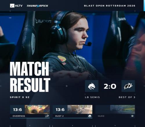 體育播報(bào)3月23日宣 CS2大賽BLAST鹿特丹B組敗者組半決賽,Spirit兩圖橫掃淘汰9z,晉級(jí)敗者組決賽對(duì)陣蒙古隊(duì),爭(zhēng)奪最后一個(gè)晉級(jí)六強(qiáng)的名額!