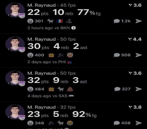 憑借連續(xù)兩場30+的表現(xiàn),雷諾成為了國王隊(duì)史上第四位做到這一點(diǎn)的新秀,也是自1993年以來首位達(dá)成此成就的國王新秀。