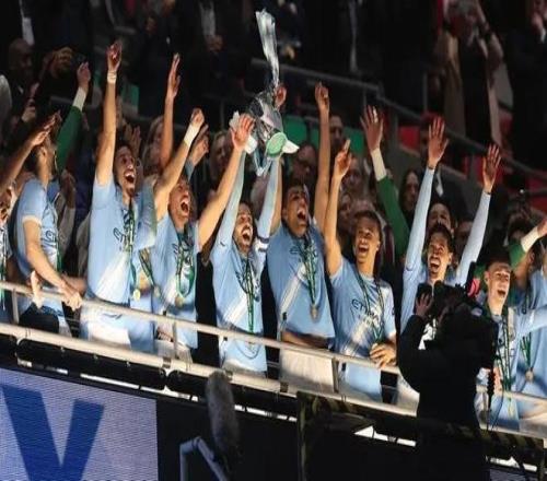 在英聯(lián)杯決賽中,曼城2-0戰(zhàn)勝阿森納,捧得英聯(lián)杯冠軍獎(jiǎng)杯。