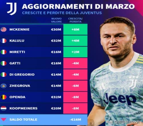 國(guó)米的身價(jià)下滑總值,比尤文圖斯(下滑1600萬)和AC米蘭(下滑1000萬)都高出很多,這引發(fā)了熱議。