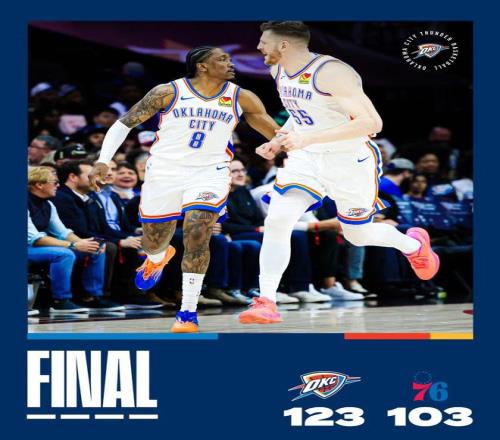 常規(guī)賽,雷霆客場123-103戰(zhàn)勝76人。