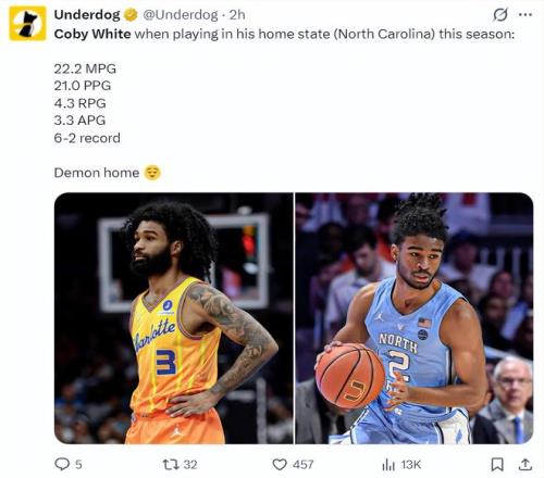 本賽季懷特在自己的家鄉(xiāng)北卡羅萊納州場均能拿到222分鐘,拿到21分4.3籃板3.3助攻,他拿到6勝2負的戰(zhàn)績。