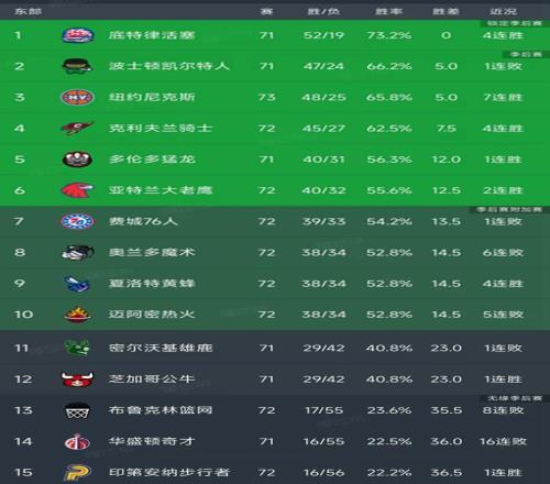 東部最新積分榜