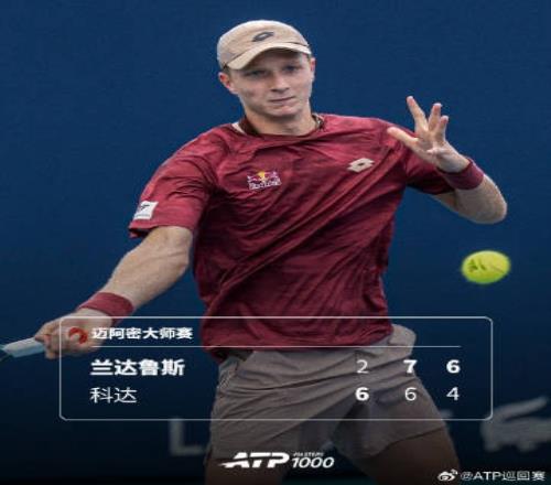 黑馬!資格賽選手蘭達(dá)魯斯21逆轉(zhuǎn)科達(dá),晉級(jí)邁阿密大師賽8強(qiáng)