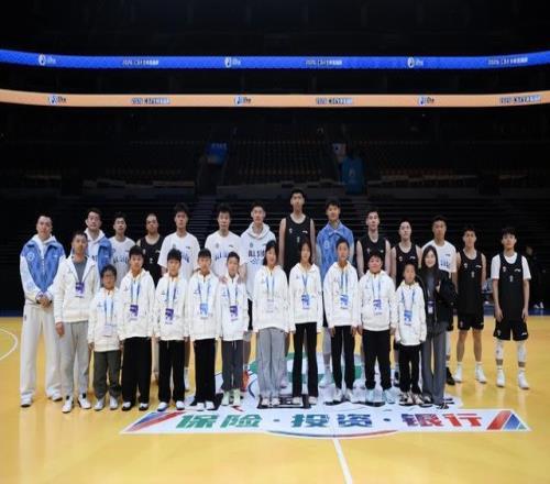 孩子們現(xiàn)場與CBA球員合影