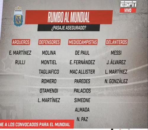 體育播報03月26日宣 據(jù)ESPN阿根廷版報道,阿根廷世界杯名單中已有20名球員鎖定席位,剩余的6個名額將由16名球員爭奪。