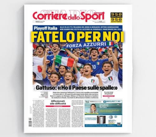 羅體今天的封面是一群年輕球迷身穿意大利球衣為意大利國家隊吶喊助威的圖片,圖中AI痕跡明顯。一段文字還指出,已經(jīng)有整整一代人沒有目睹意大利征戰(zhàn)世界杯。