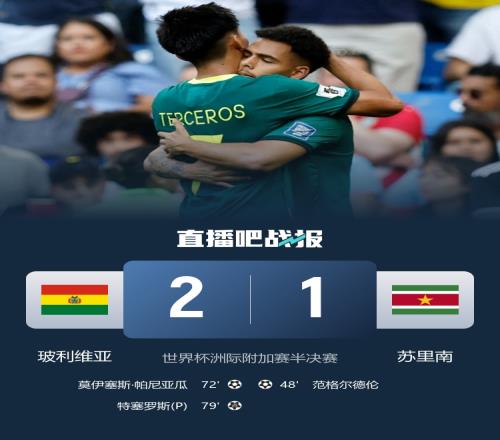 將戰(zhàn)伊拉克!玻利維亞21逆轉(zhuǎn)蘇里南進(jìn)附加賽決賽特塞羅斯點(diǎn)射