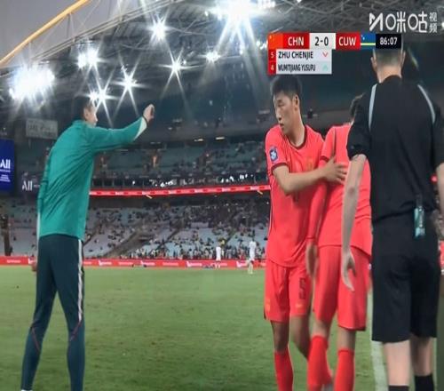 國足繼續(xù)換人!比賽第86分鐘,吾米提江替補(bǔ)登場,換下朱辰杰