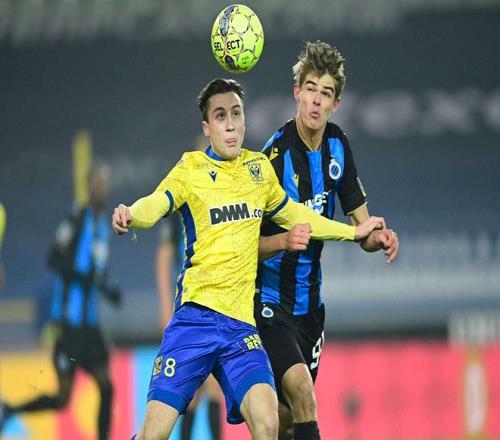 效力圣圖爾登期間,身著黃色球衣、藍(lán)色球褲的賴茨。他曾為這支比利時球隊(duì)出戰(zhàn)36場比賽。