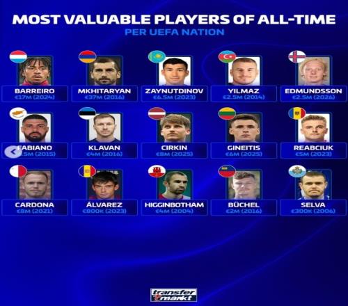 歐足聯(lián)旗下各隊歷史身價最高球員:亞馬爾、哈蘭德、姆巴佩2億歐