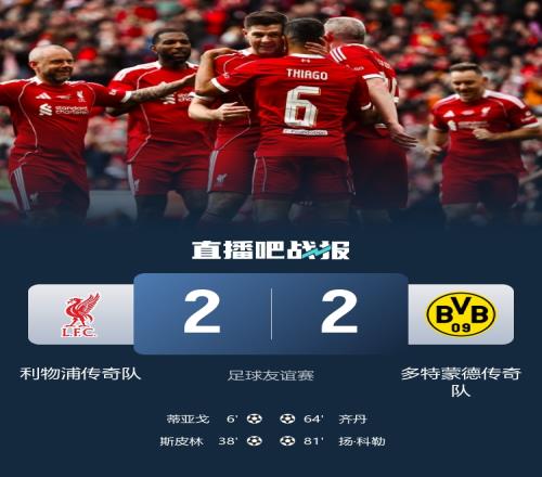 蒂亞戈、斯皮林破門,利物浦傳奇隊(duì)2-2多特傳奇隊(duì)。