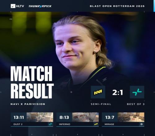 體育播報(bào)3月29日宣 CS2大賽BLAST鹿特丹第二場半決賽,NAVI鏖戰(zhàn)三圖2-1戰(zhàn)勝PV,晉級決賽對陣Vitality!