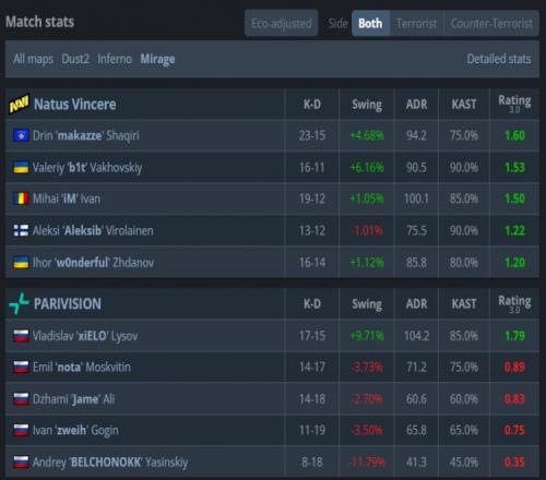 第16回合,nota在B送wonderful首殺,KK法瑪斯混煙打掉makazze,PV三人保槍,比分來到8-8。第17回合,PV四人賭A,上帝大狙開轟配合nota與zweih三人團(tuán)滅NAVI,PV拿到第9分。