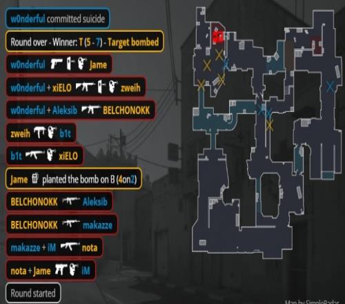 第5回合PV純E讓NAVI拿到第3分。第6回合長槍局,iM在A平臺換掉KK,nota打掉小李子后xiELO在A下包,NAVI三人保槍讓出第3分。次回合上帝大狙中路先殺makazze,wonderful大狙中路空摘nota,iM拉出A小換掉上帝,KK來A大打掉小李子后被wonderful大狙轟掉,PV在A下包,zweih與xiELO雙人收割殘局,PV拿到第4分。第8回合wonderful大狙開場雙殺KK與xiELO,zweih進(jìn)A下包,makazze與b1t雙人三殺扳平比分。