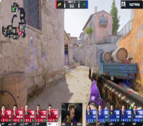 圖三荒漠迷城,NAVI贏下拼刀選邊先作CT,手槍局PV五人來B,wonderful雙槍B二樓雙殺,makazze包點(diǎn)雙殺,NAVI拿到首分。次回合PV純E讓NAVI拿到第2分。