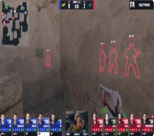 第10回合長槍局,makazze掃蕩A包點(diǎn)爆轟四殺,兩回合七殺,NAVI拿到第9分。