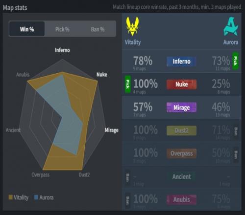 第5回合長槍局,Zywoo一把AK雙殺帶隊打贏3v5殘局拿到第5分。次回合soulfly鐵板打掉ropz后再殺mezii,小蜜蜂在B下包被拆,Aurora拿到首分。第7回合開場外場2換2,小蜜蜂帶包轉B,鐵板Zywoo與ropz打掉禮神與soulfly,MAJ3R打掉Zywoo,ropz沒能完成下包,Aurora拿到第3分。