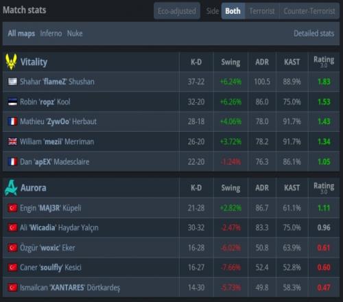 Vitality:mezii、apEX、ropz、flameZ、ZywOo