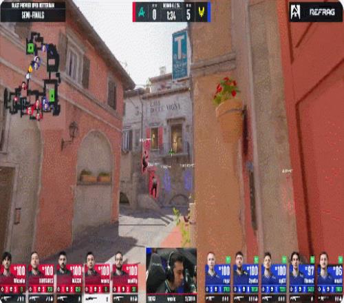 半場前最后一回合,外場三樓左手鳥狙爆頭apex后被Zywoo大狙補掉,ropz單人黃房偷掉MAJ3R,火仔進A雙殺mezii下包,小蜜蜂9-3結束上半場。