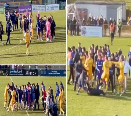 社交媒體流傳視頻顯示,兩隊球員在中場發(fā)生混戰(zhàn),隨后教練組成員也紛紛入場加入沖突。