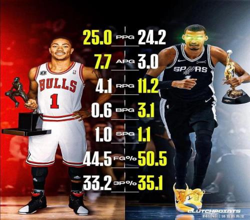 雷霆媒體如此急切地表達(dá)看法,恰恰從側(cè)面反映出文班奪得MVP的可能性越來越大。而且,倘若文班最終能夠如愿以償,那他將超越羅斯,成為NBA歷史上最年輕的MVP獲得者。把當(dāng)年意氣風(fēng)發(fā)、正值巔峰的羅斯與如今的文班相比,文班在數(shù)據(jù)方面甚至毫不遜色。更讓人細(xì)思極恐的是,文班似乎不僅要“搶走”鴨梨的MVP寶座……