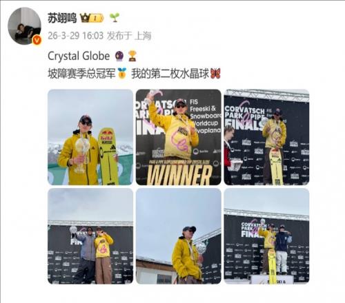 蘇翊鳴社媒:坡障賽季總冠軍我的第二枚水晶球